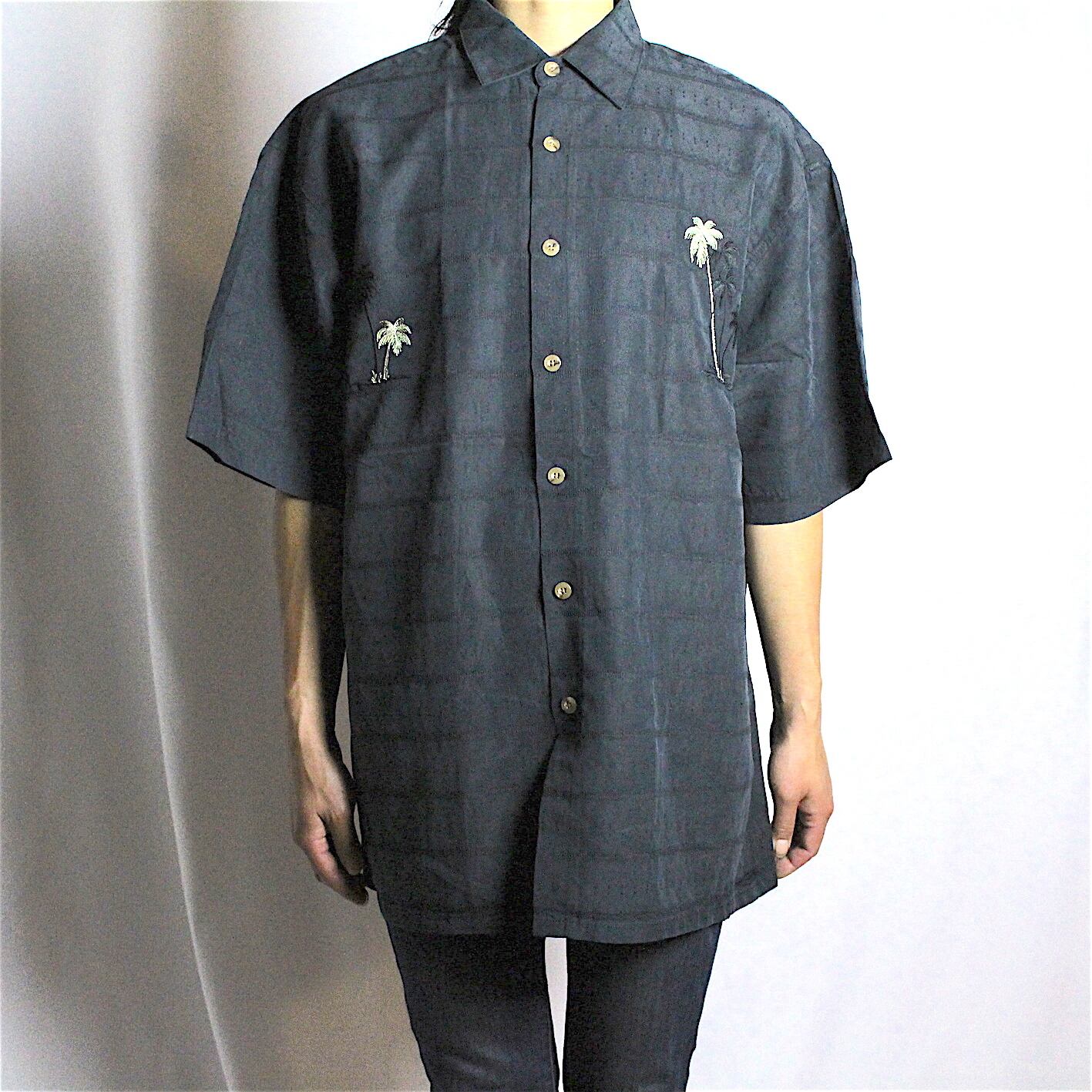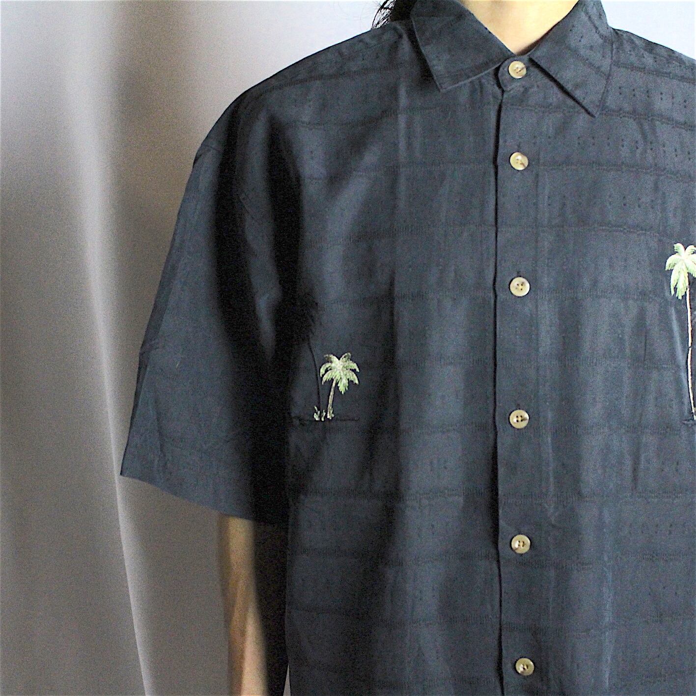 s/s embroidery design black hawaiian shirt 【c074】