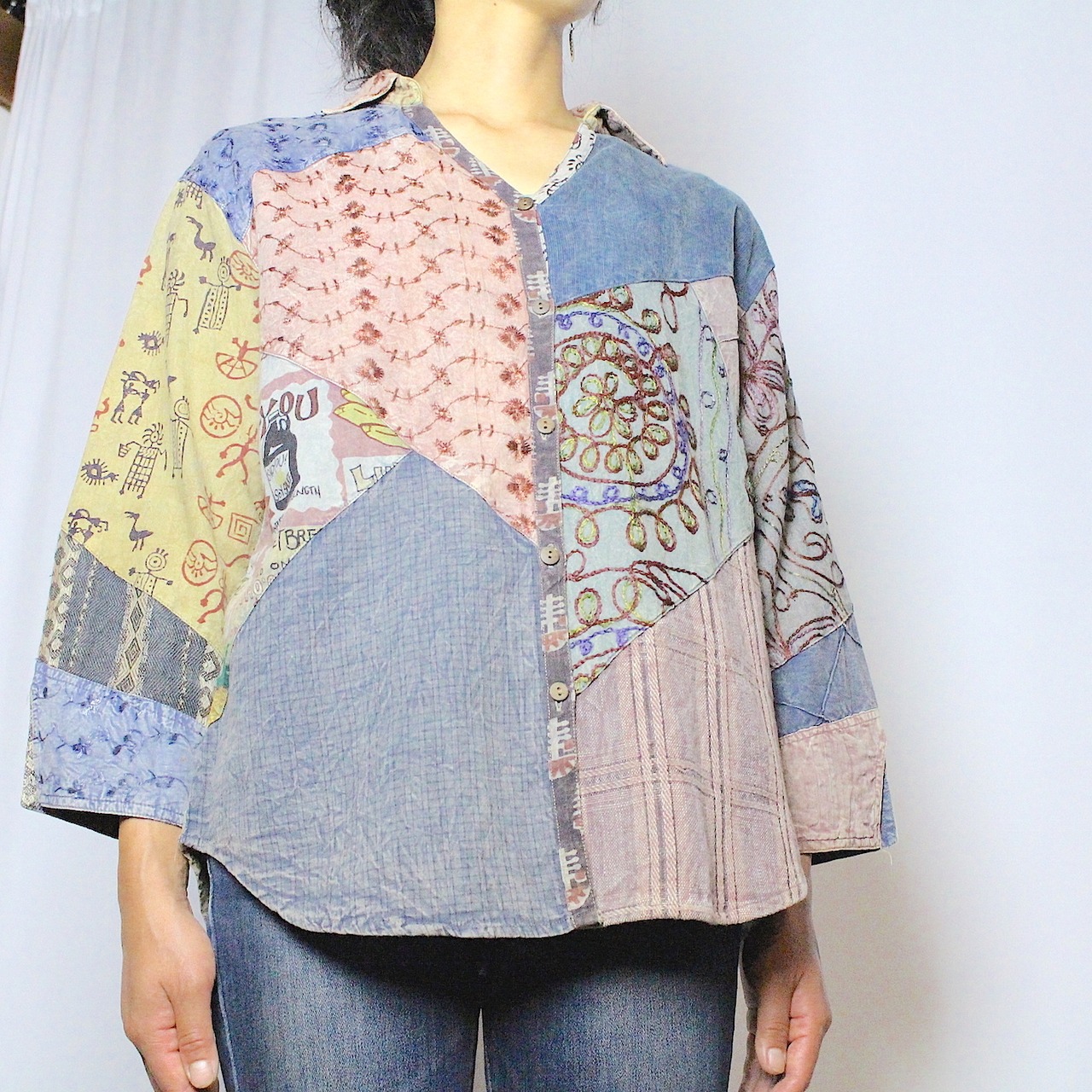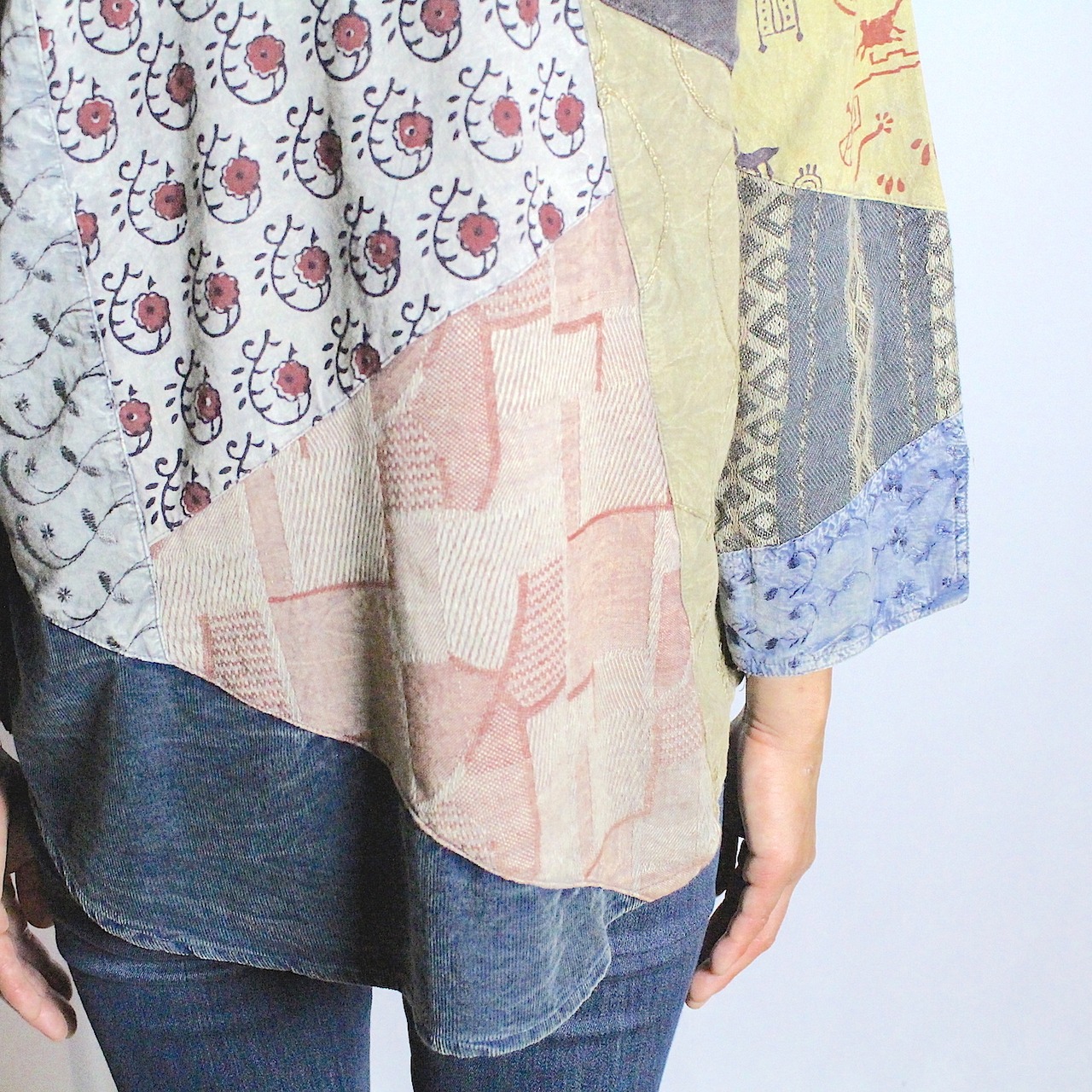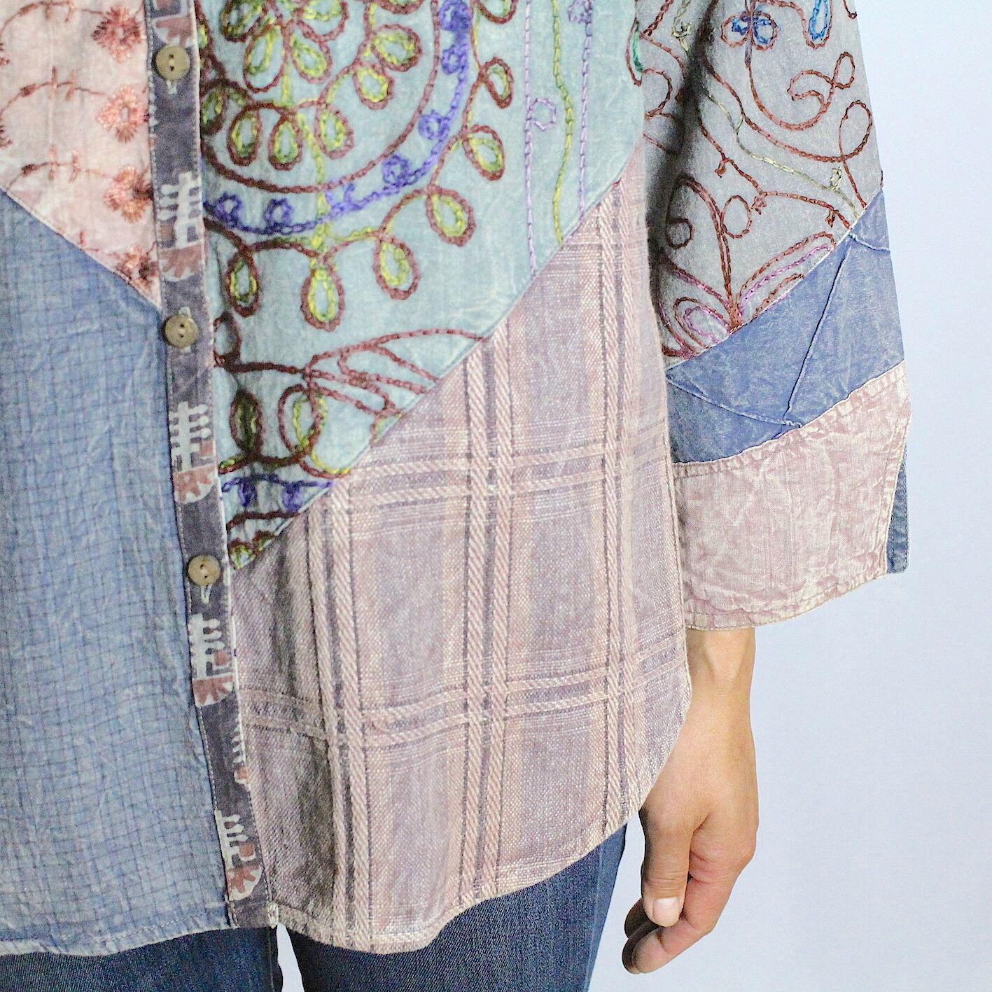 size - M、肩幅50cm、身幅59cm、着丈66cm、袖丈45cm