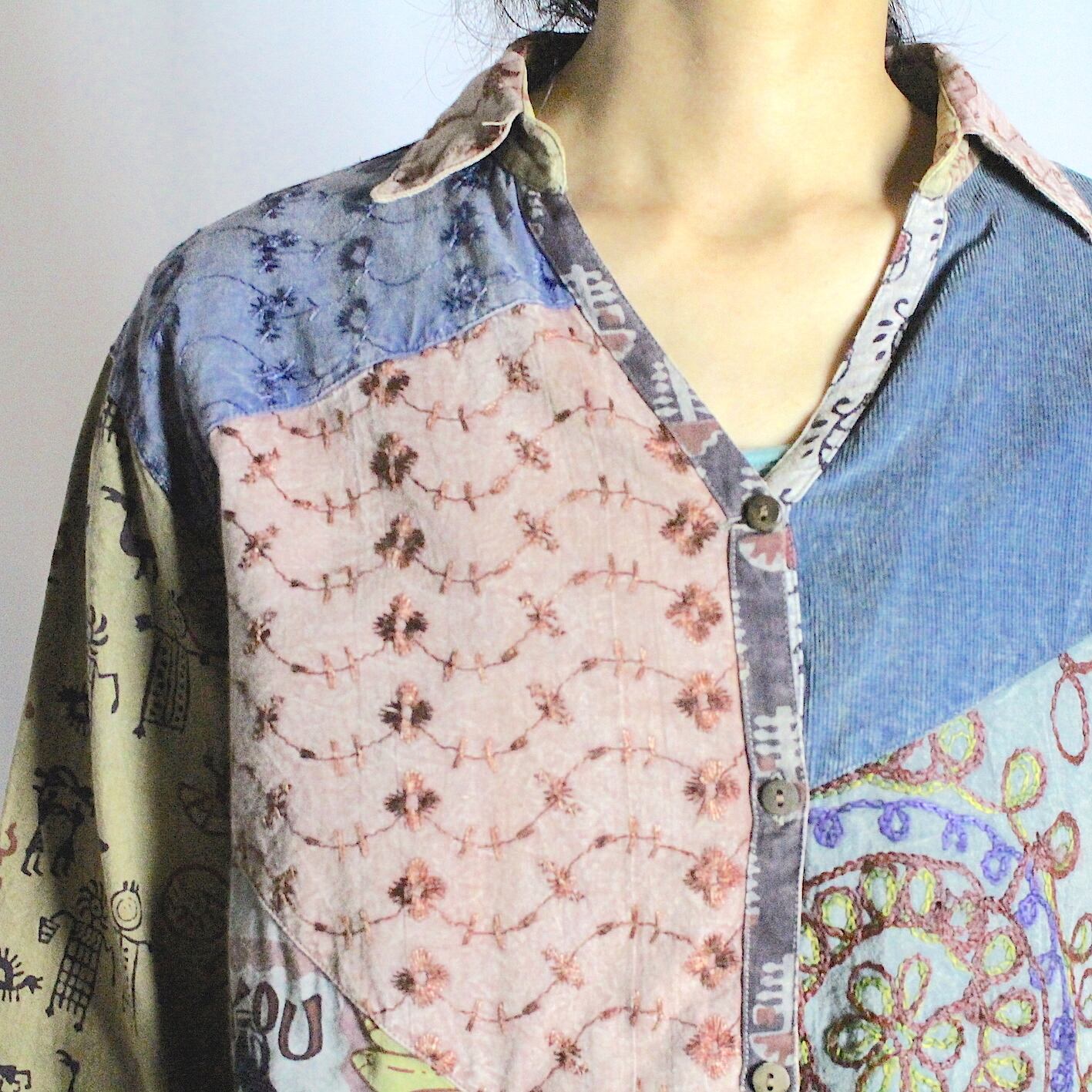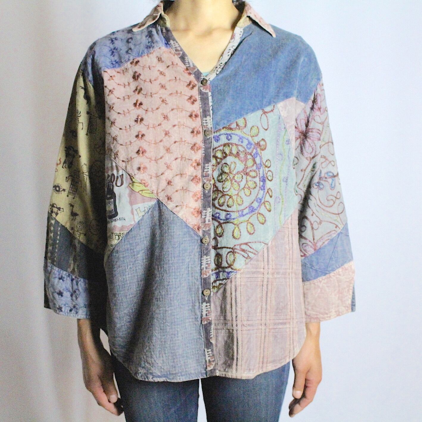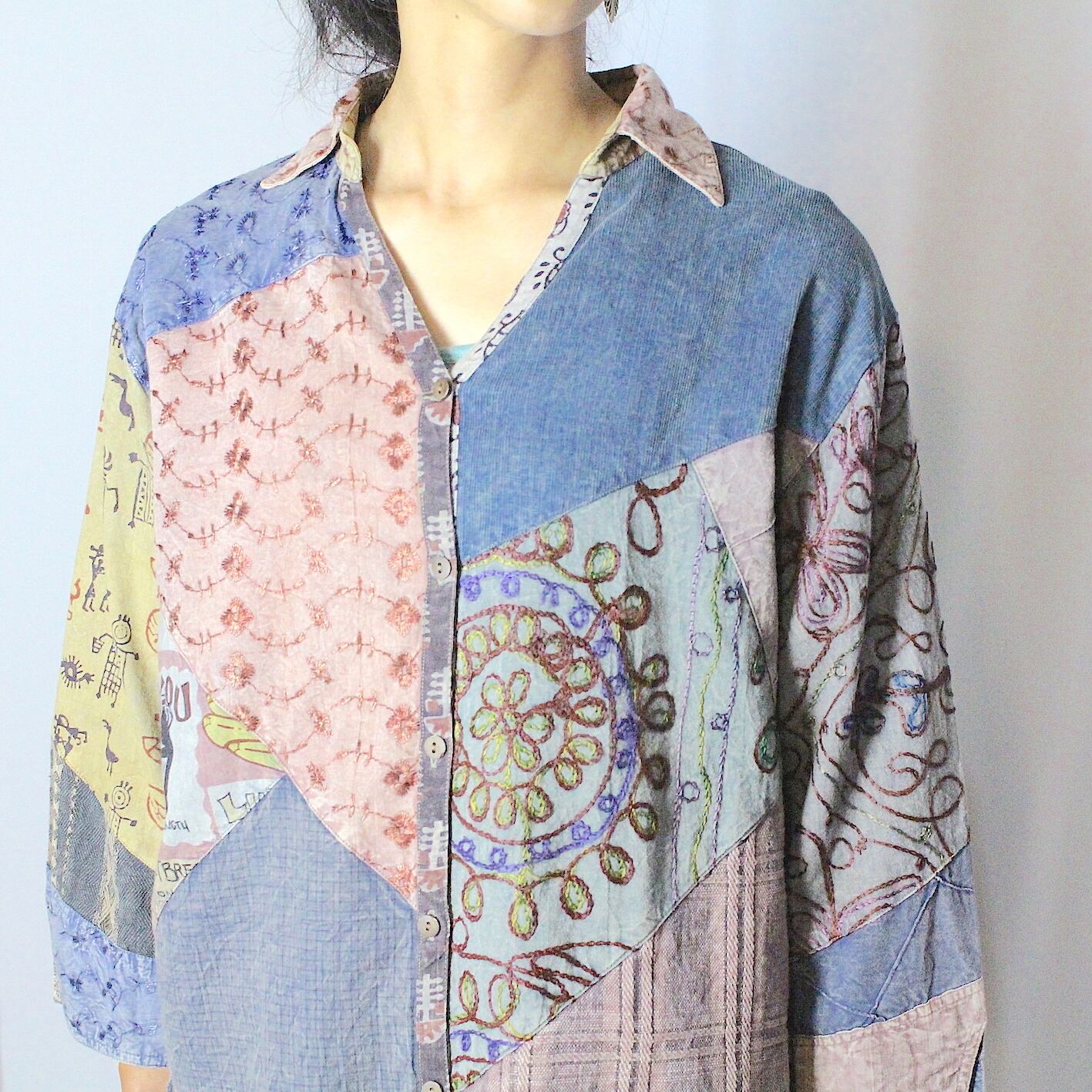 size - M、肩幅50cm、身幅59cm、着丈66cm、袖丈45cm