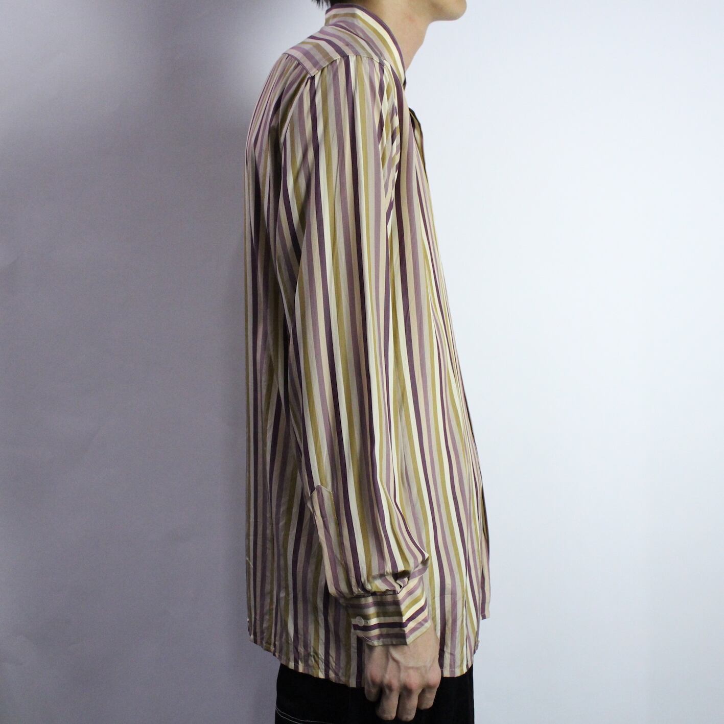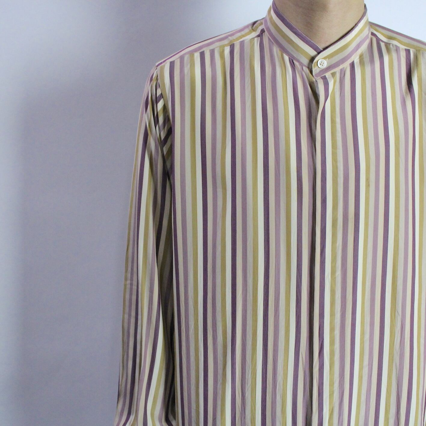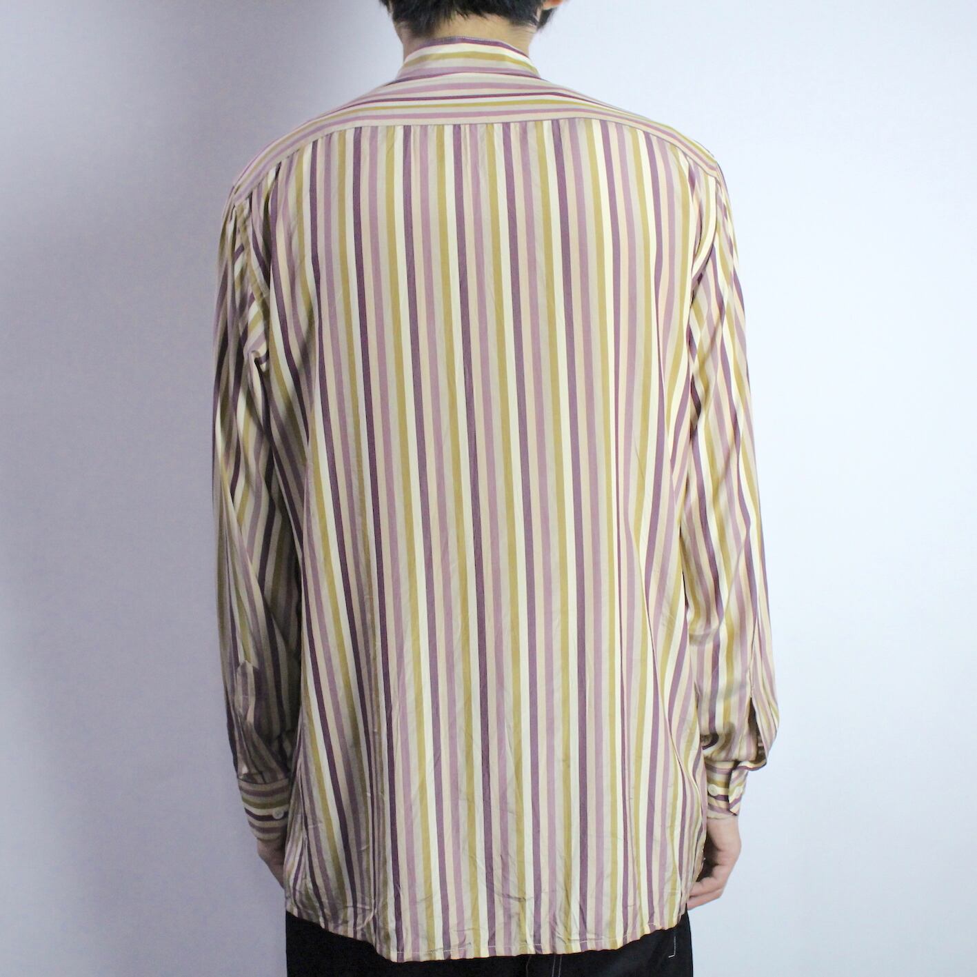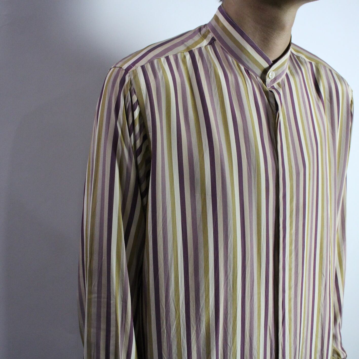 l/s stripe pattern band collar shirt 【s300】