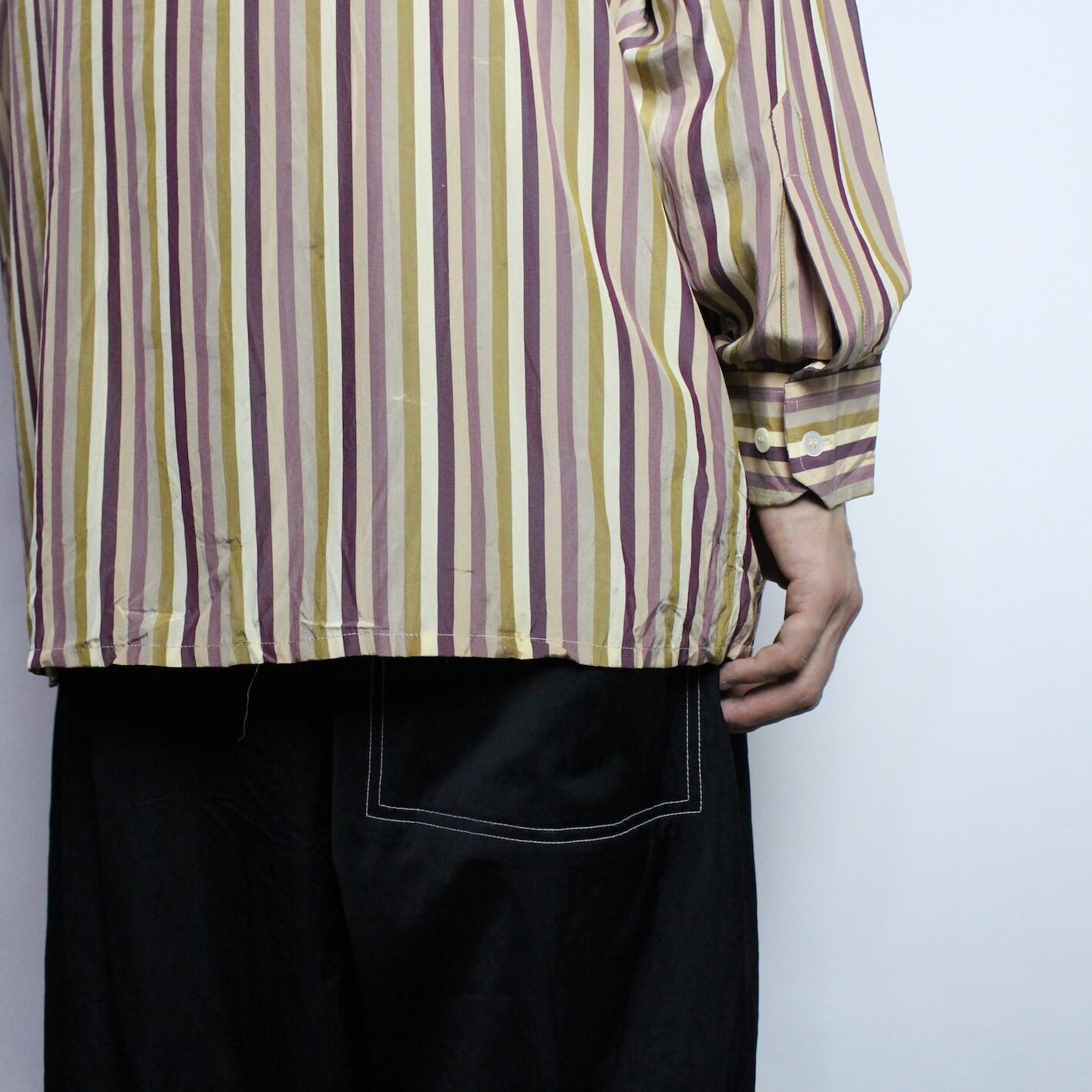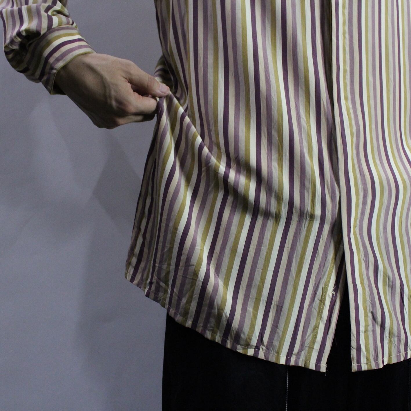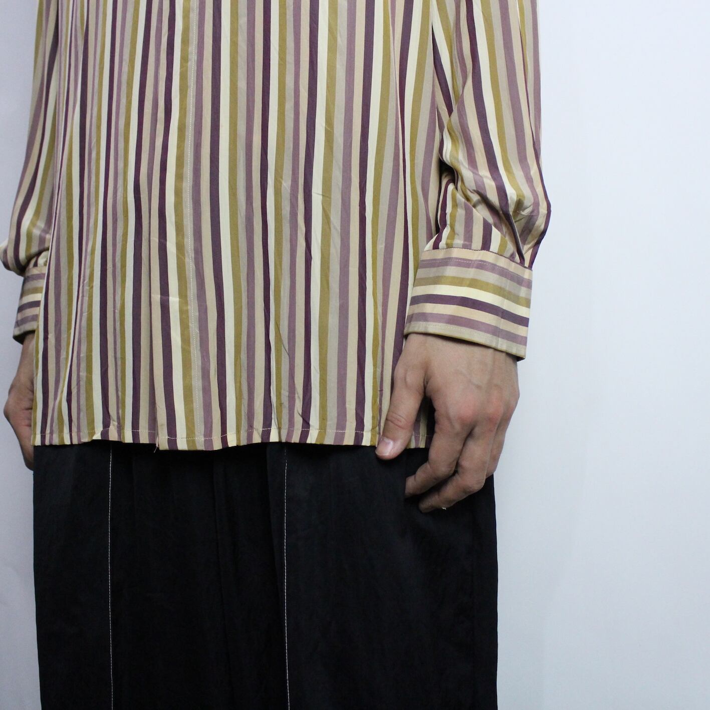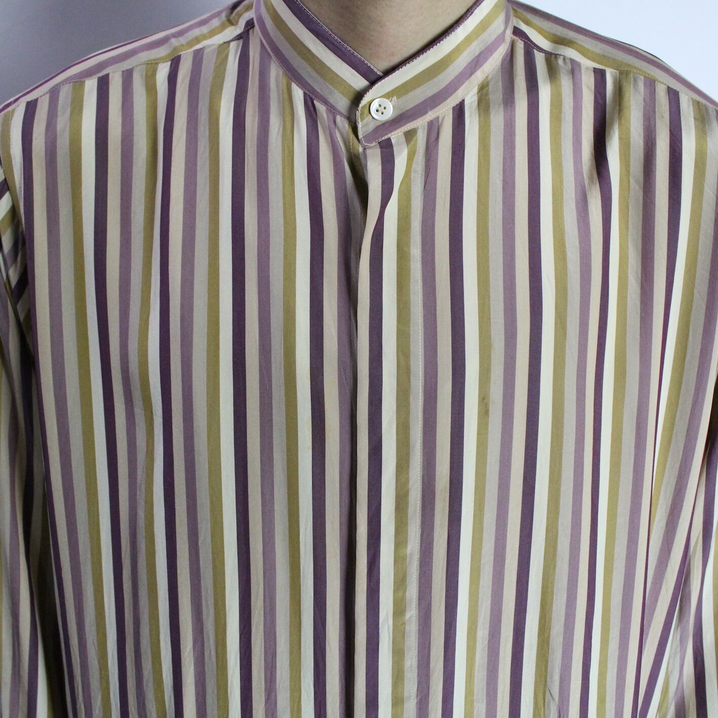 l/s stripe pattern band collar shirt 【s300】