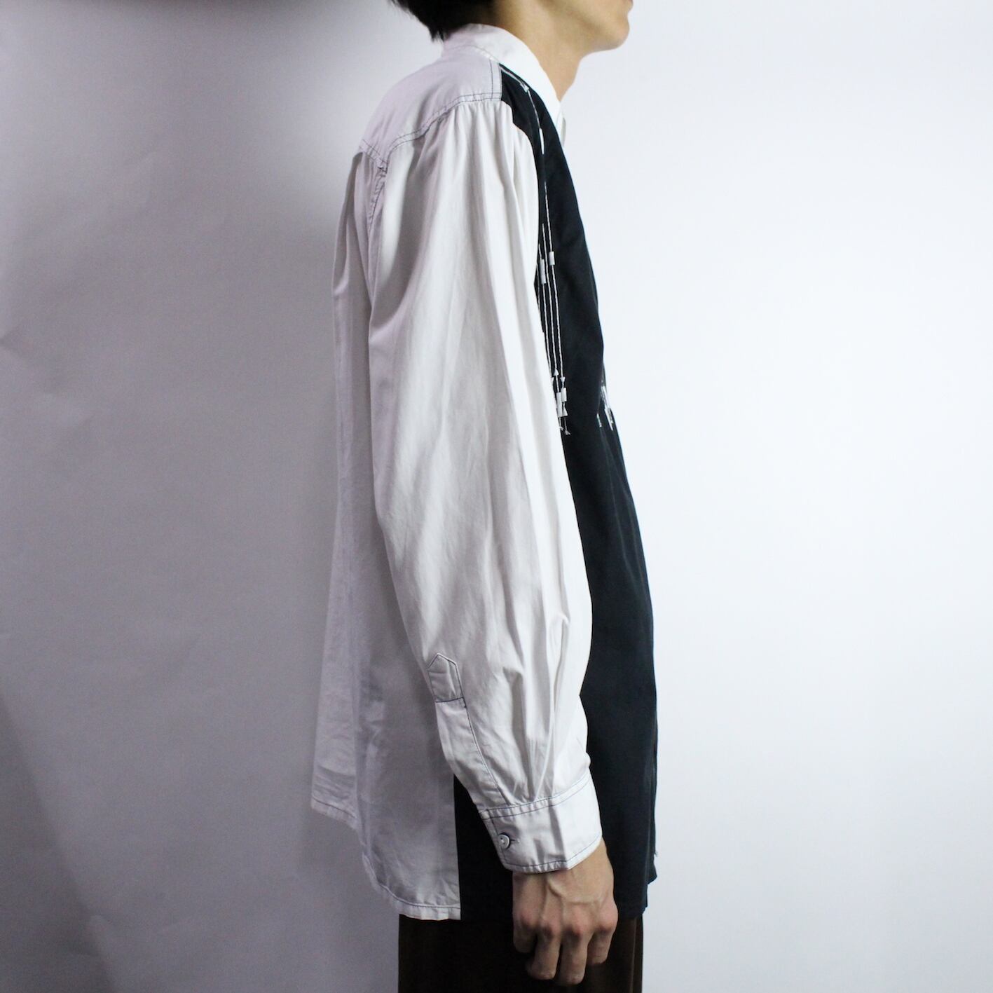 l/s bi-color&embroidery design shirt 【s344】