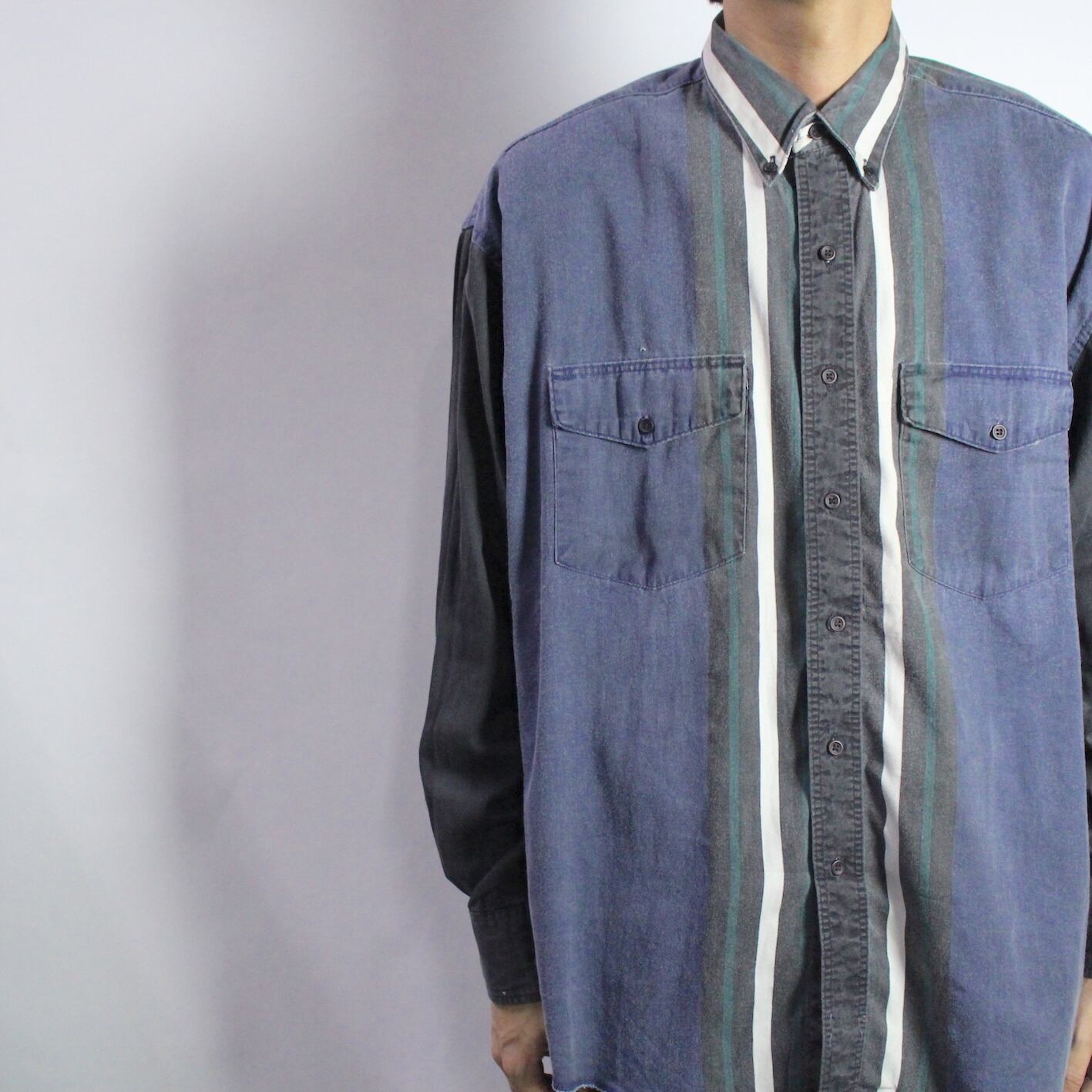 l/s stripe design cotton shirt 【s432】