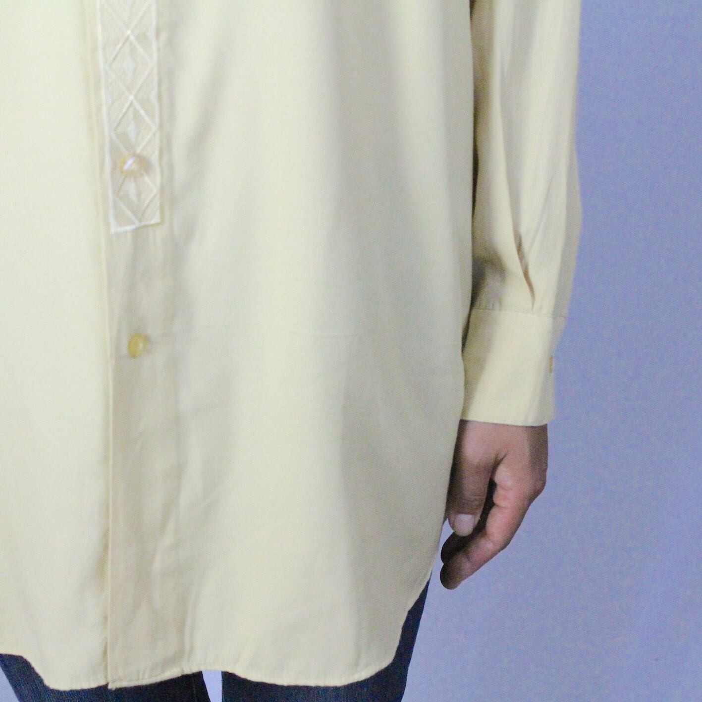 l/s embroidery design band collar shirt 【c366】