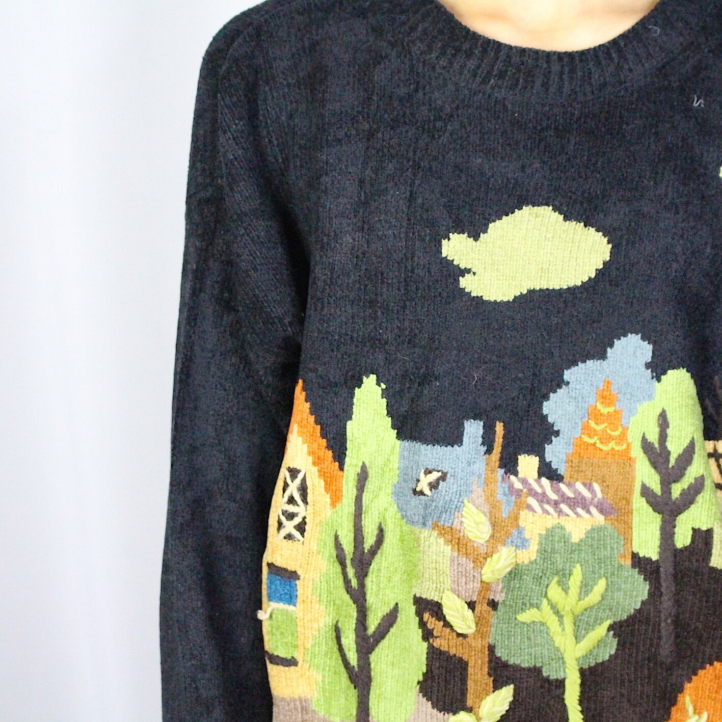 embroidery design pile knit sweater 【c387】