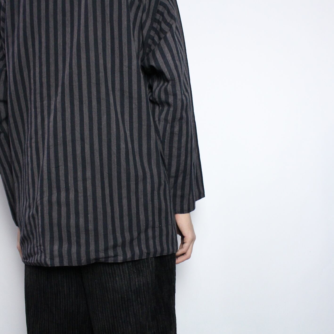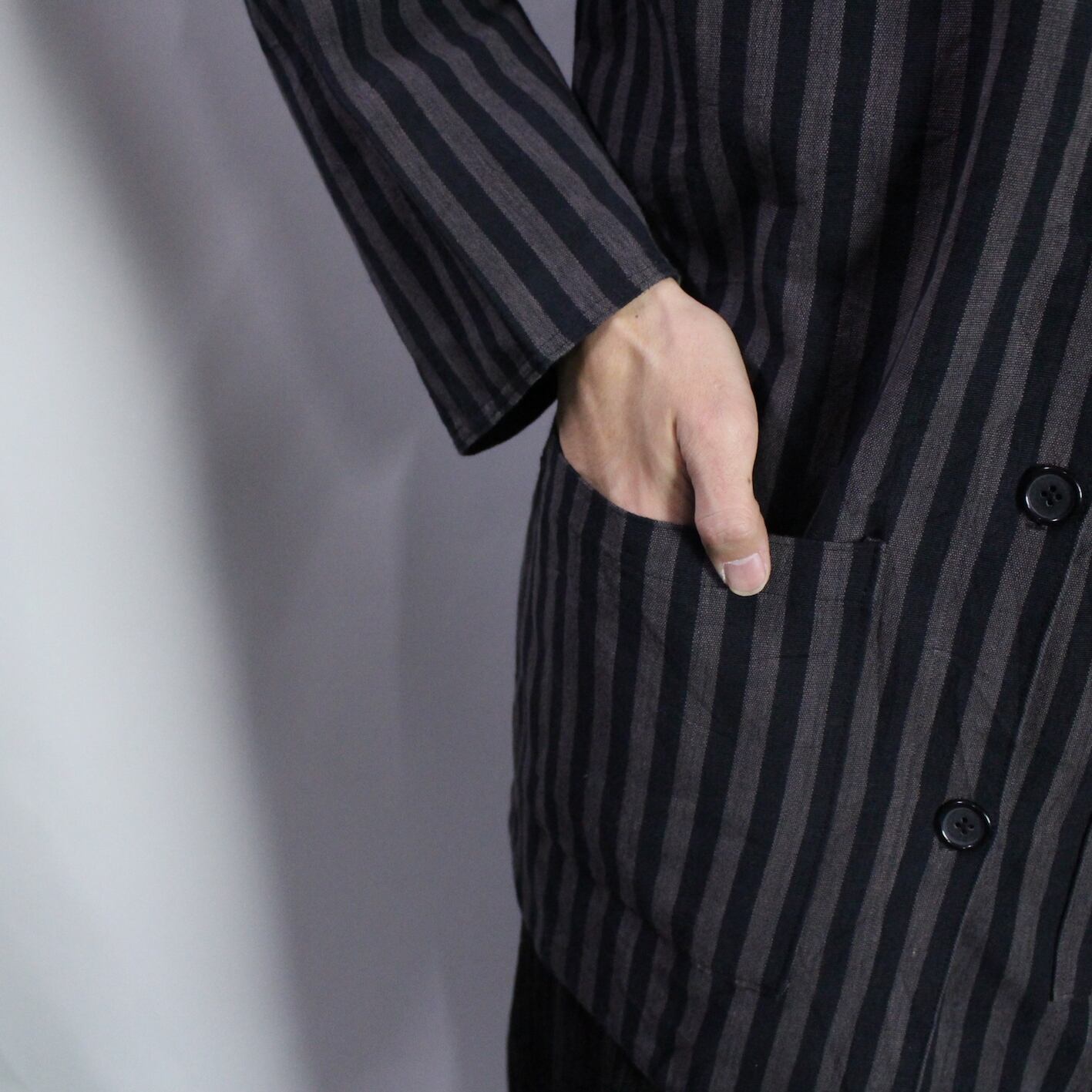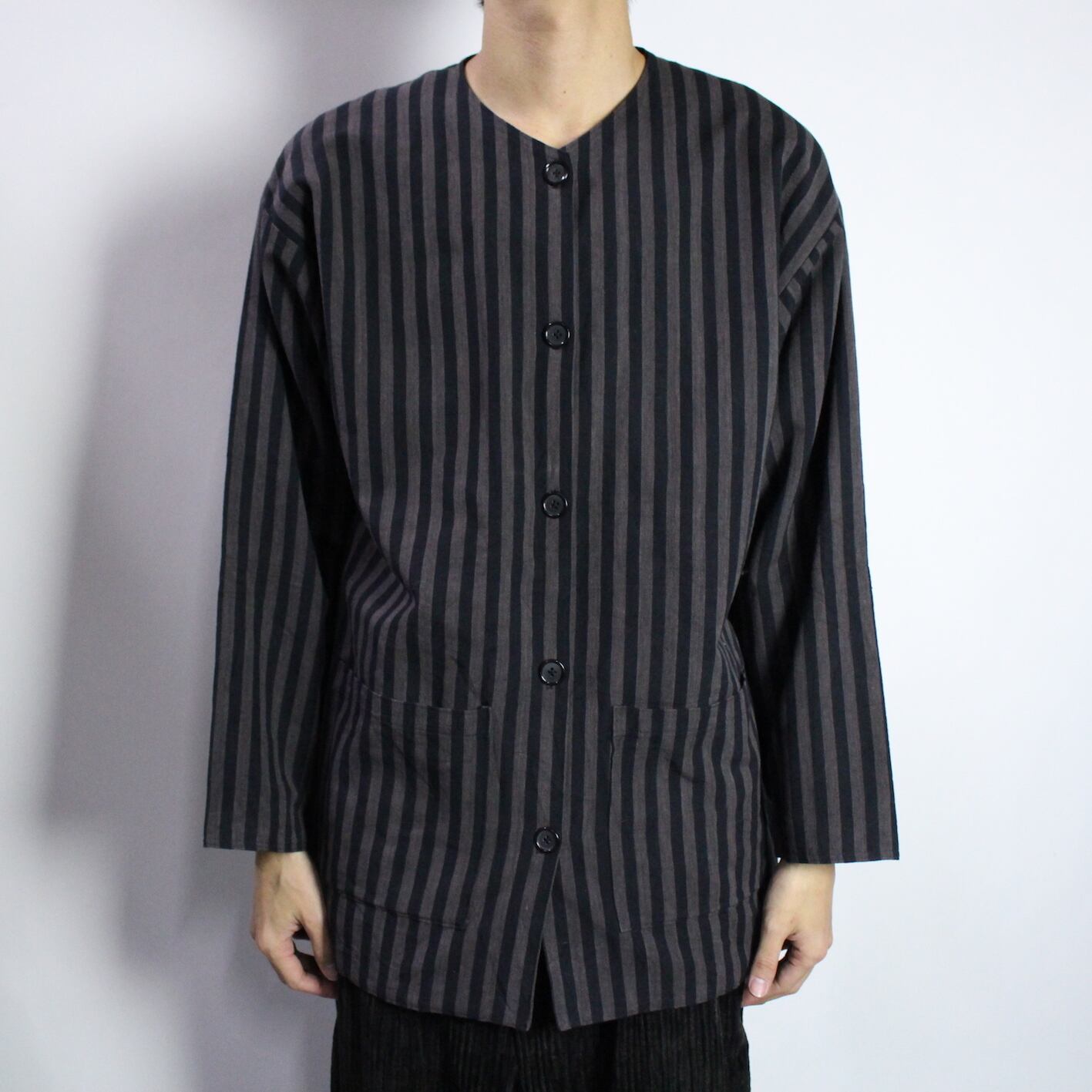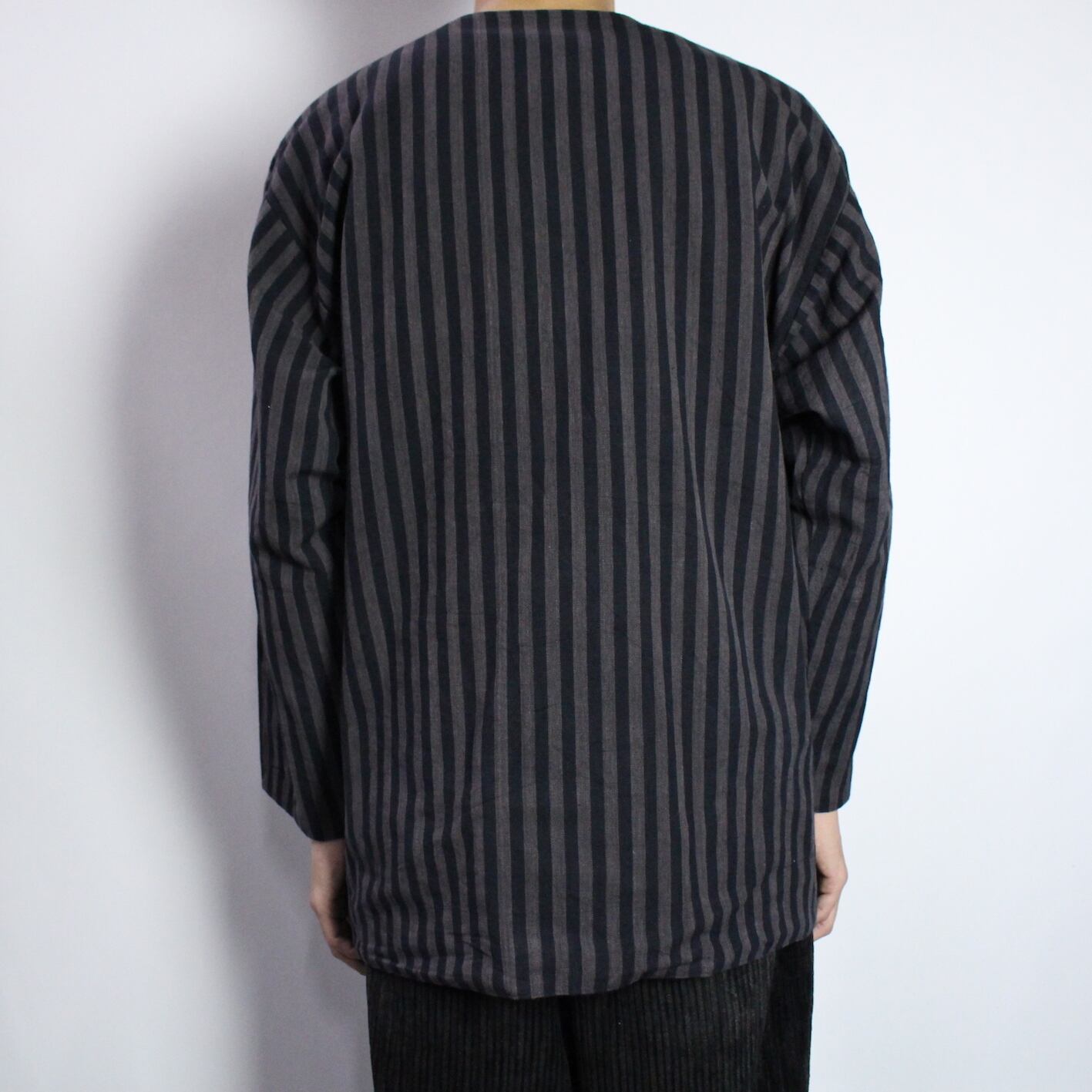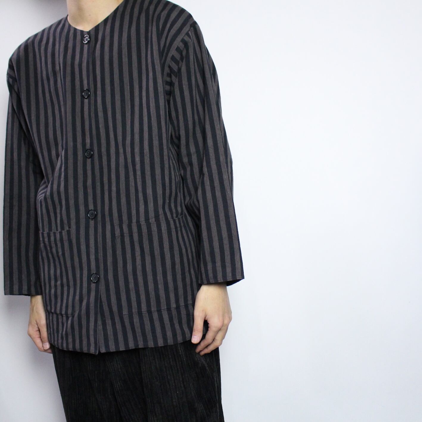 stripe pattern no collar jacket 【s555】