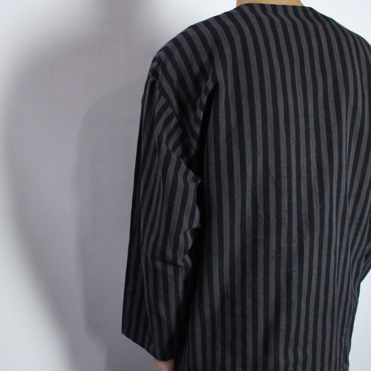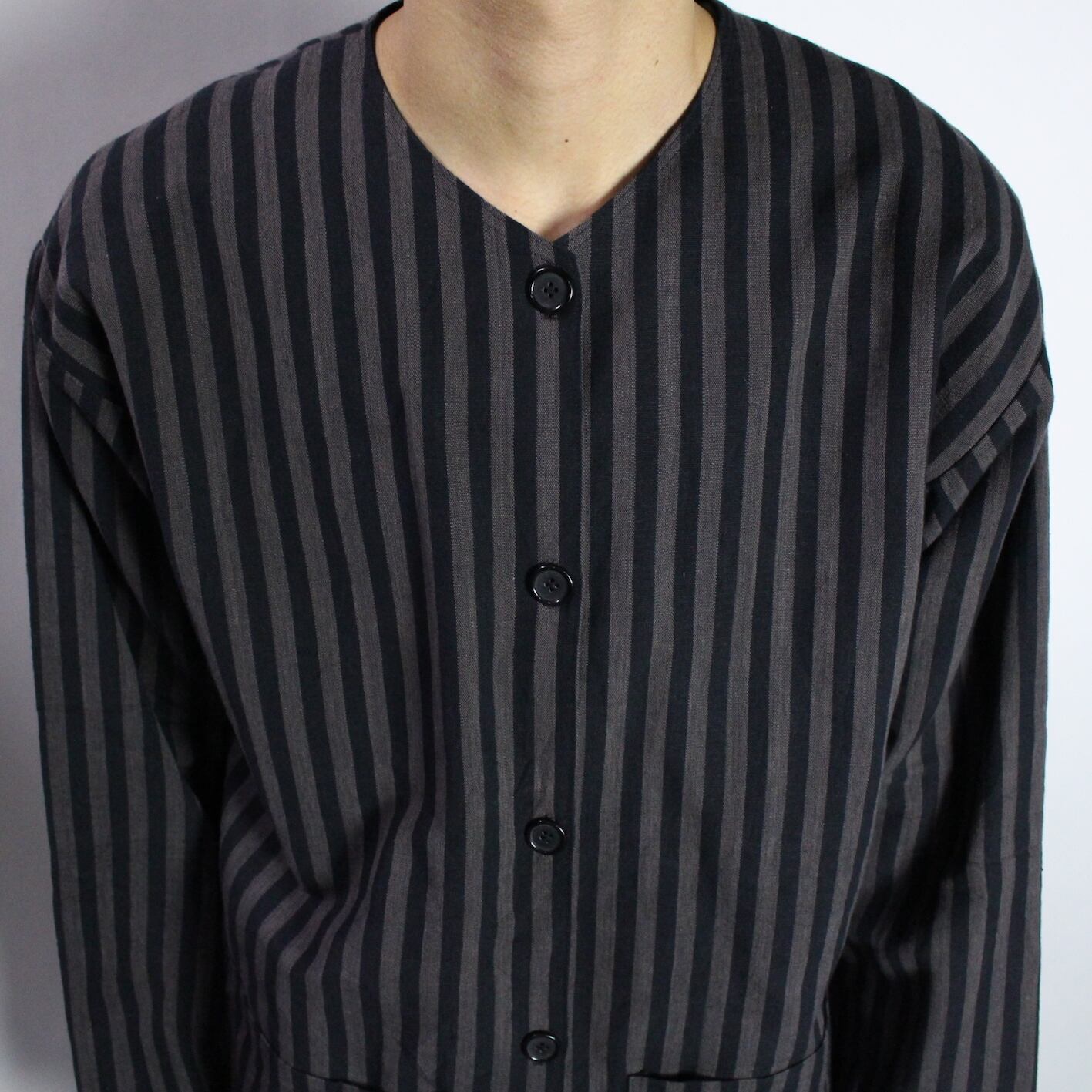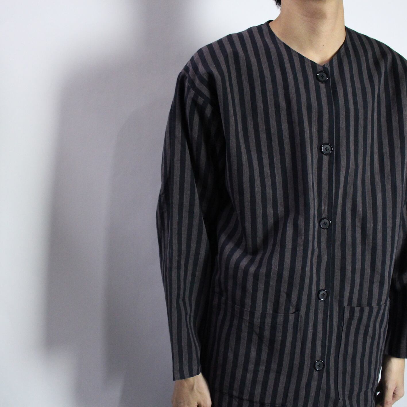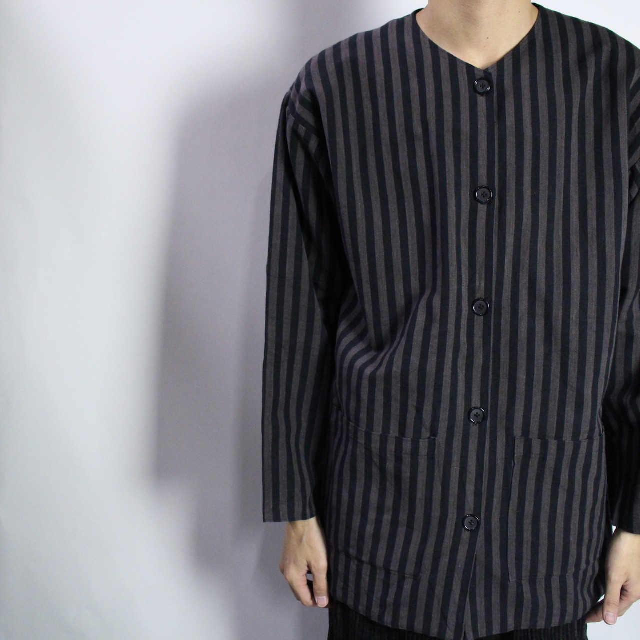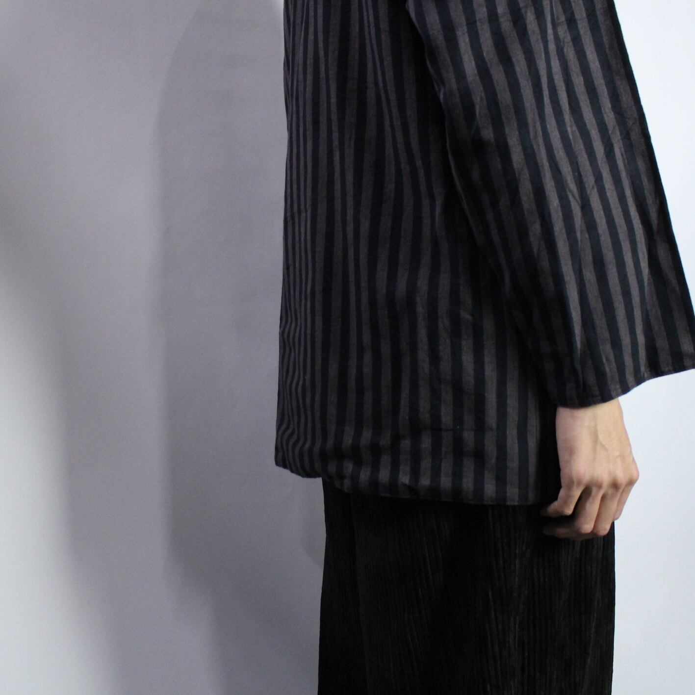 stripe pattern no collar jacket 【s555】
