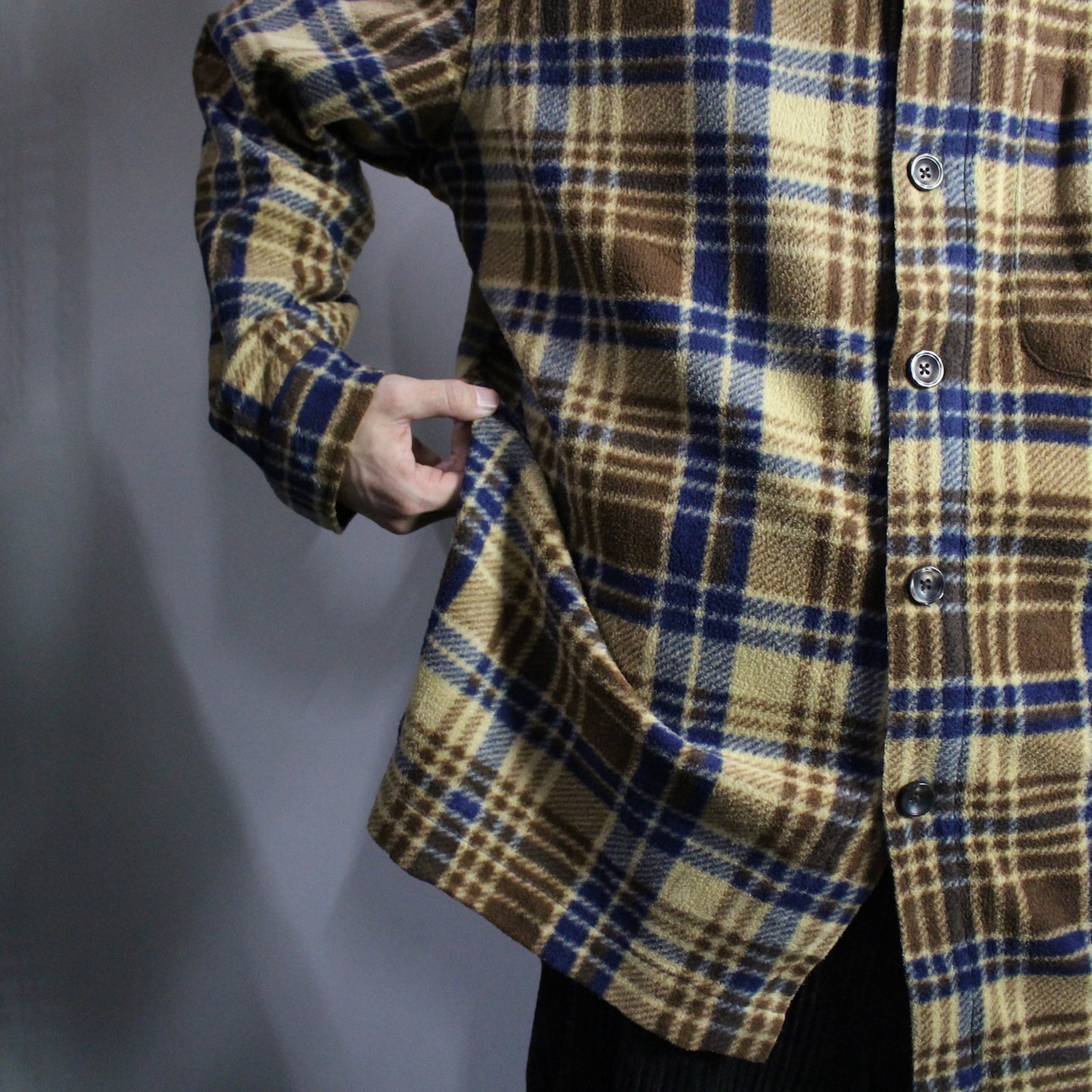 l/s check pattern fleece shirt 【s586】