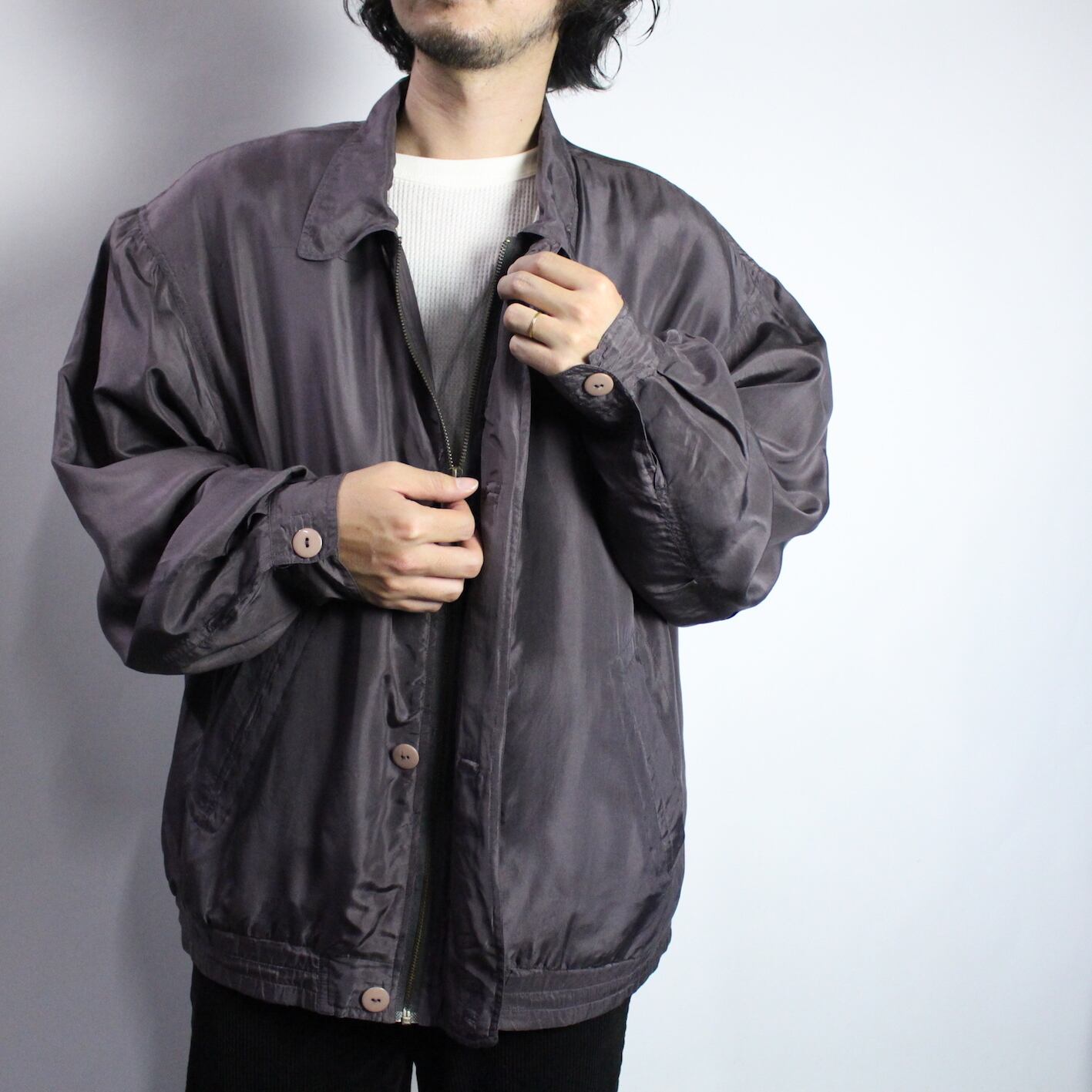 zip-up & button design silk jacket 【s595】