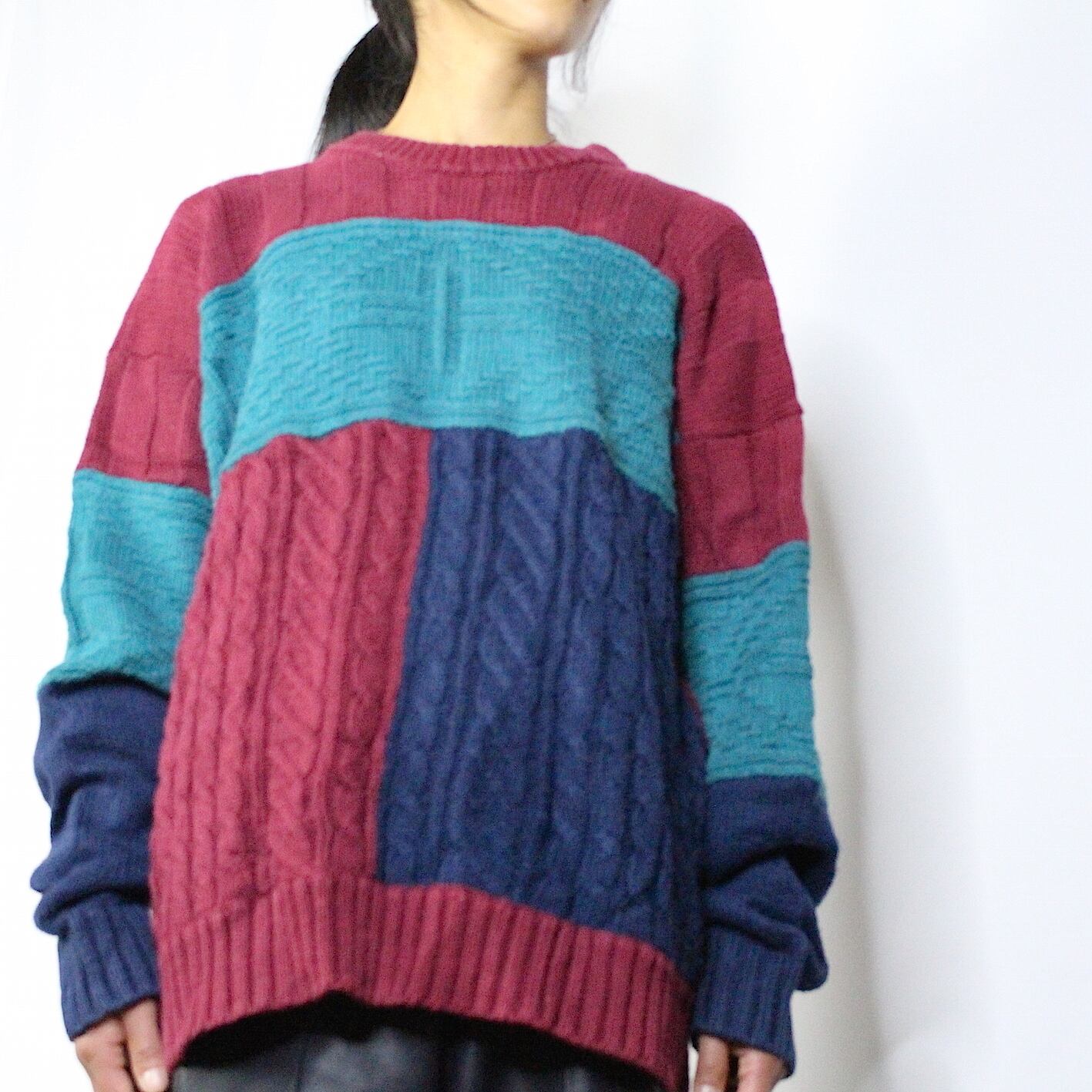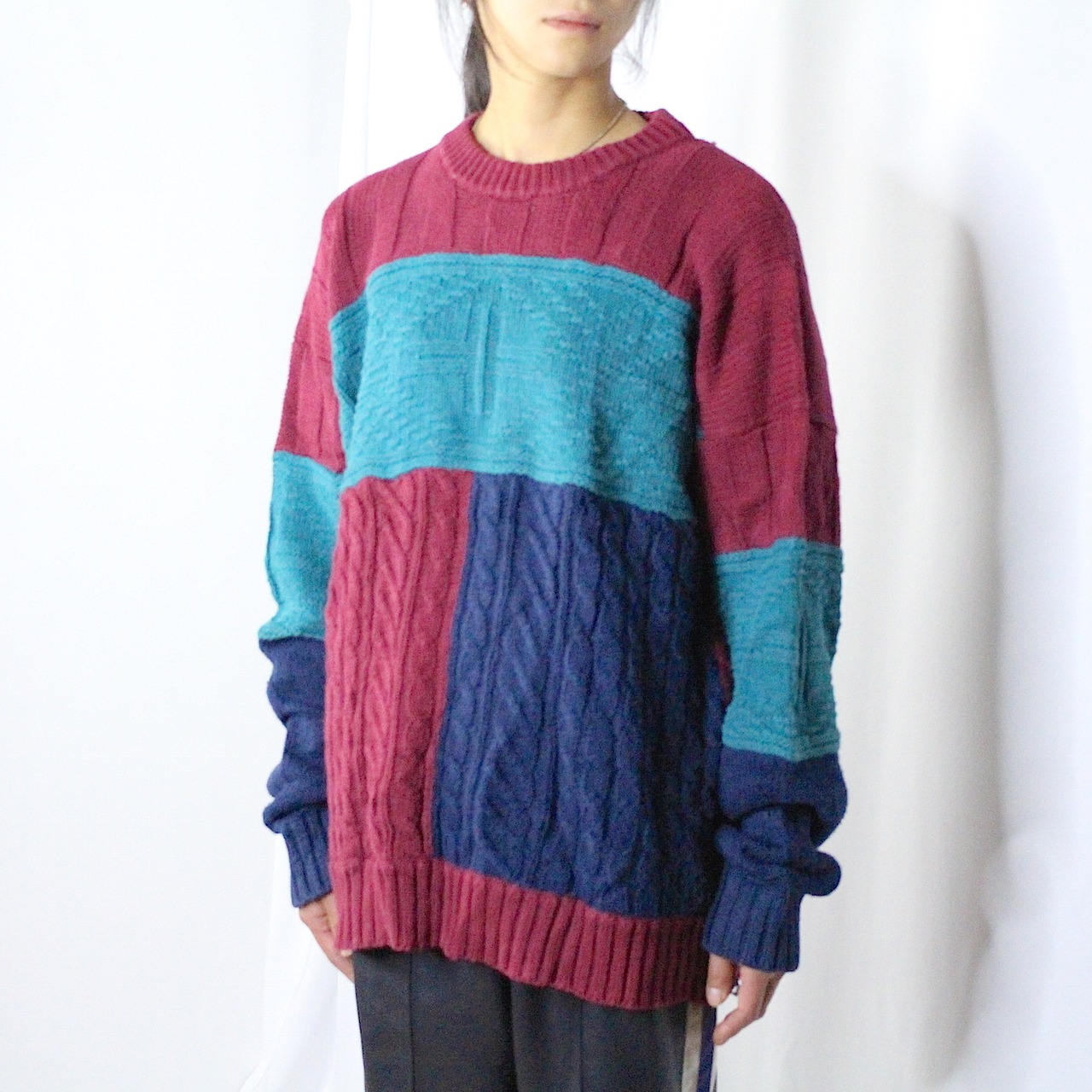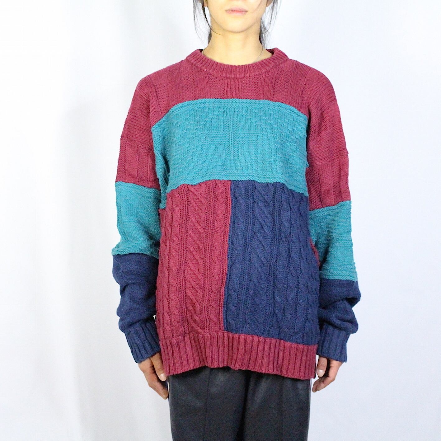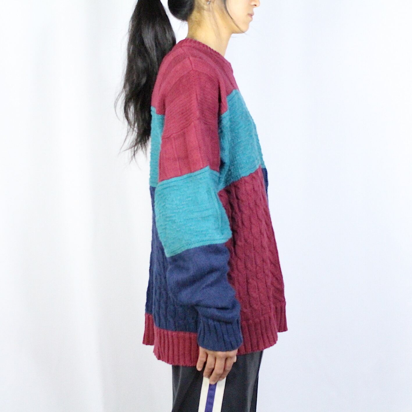 switching design knit sweater 【c557】