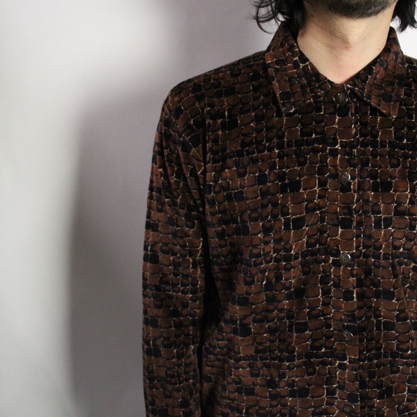 l/s art pattern velours shirt 【s704】