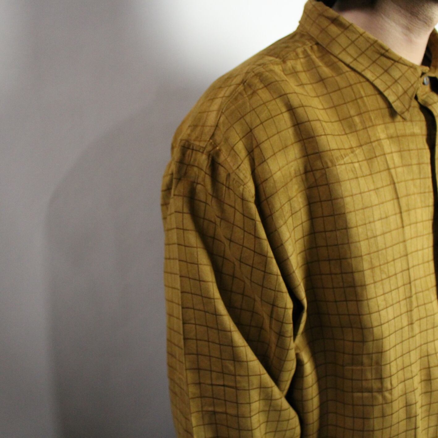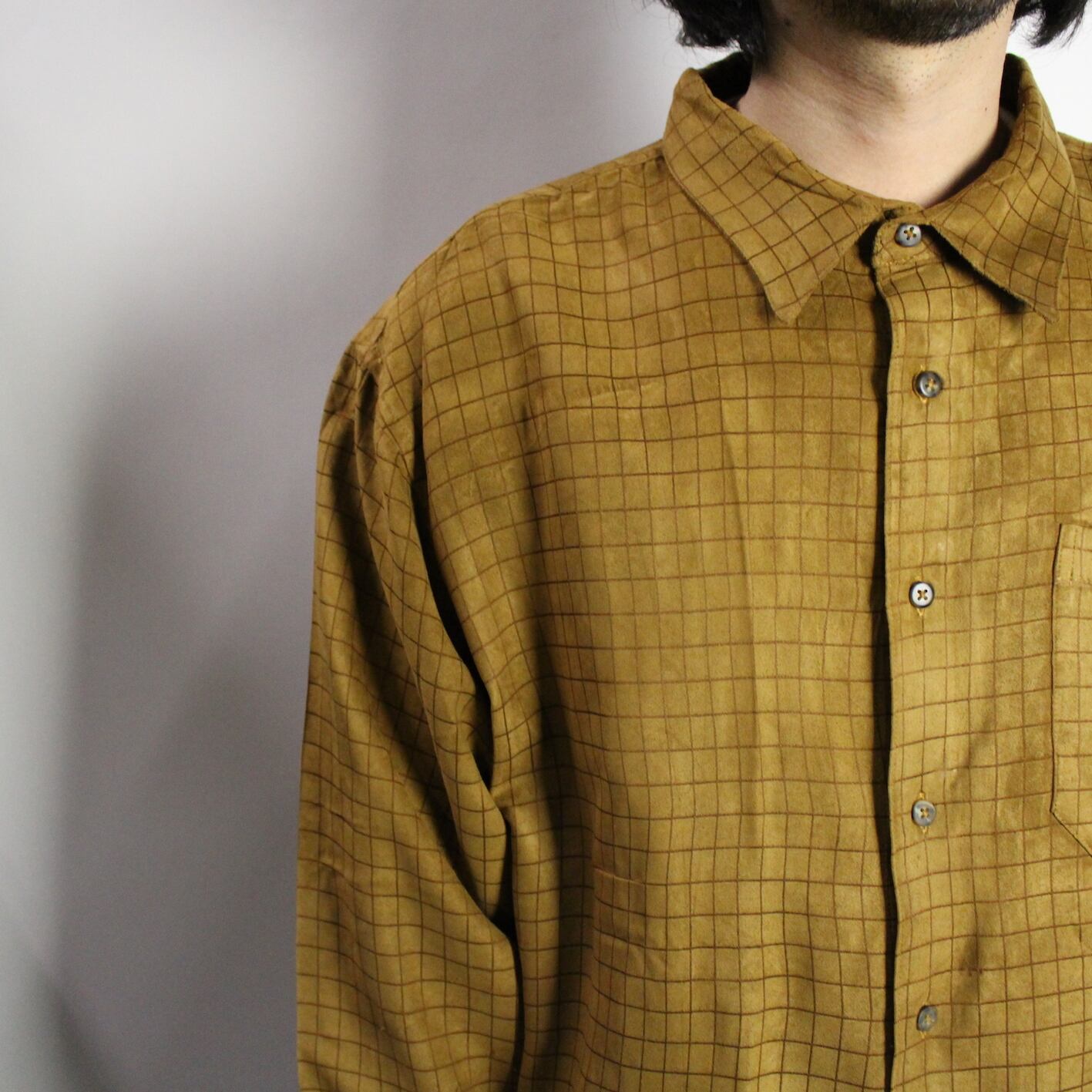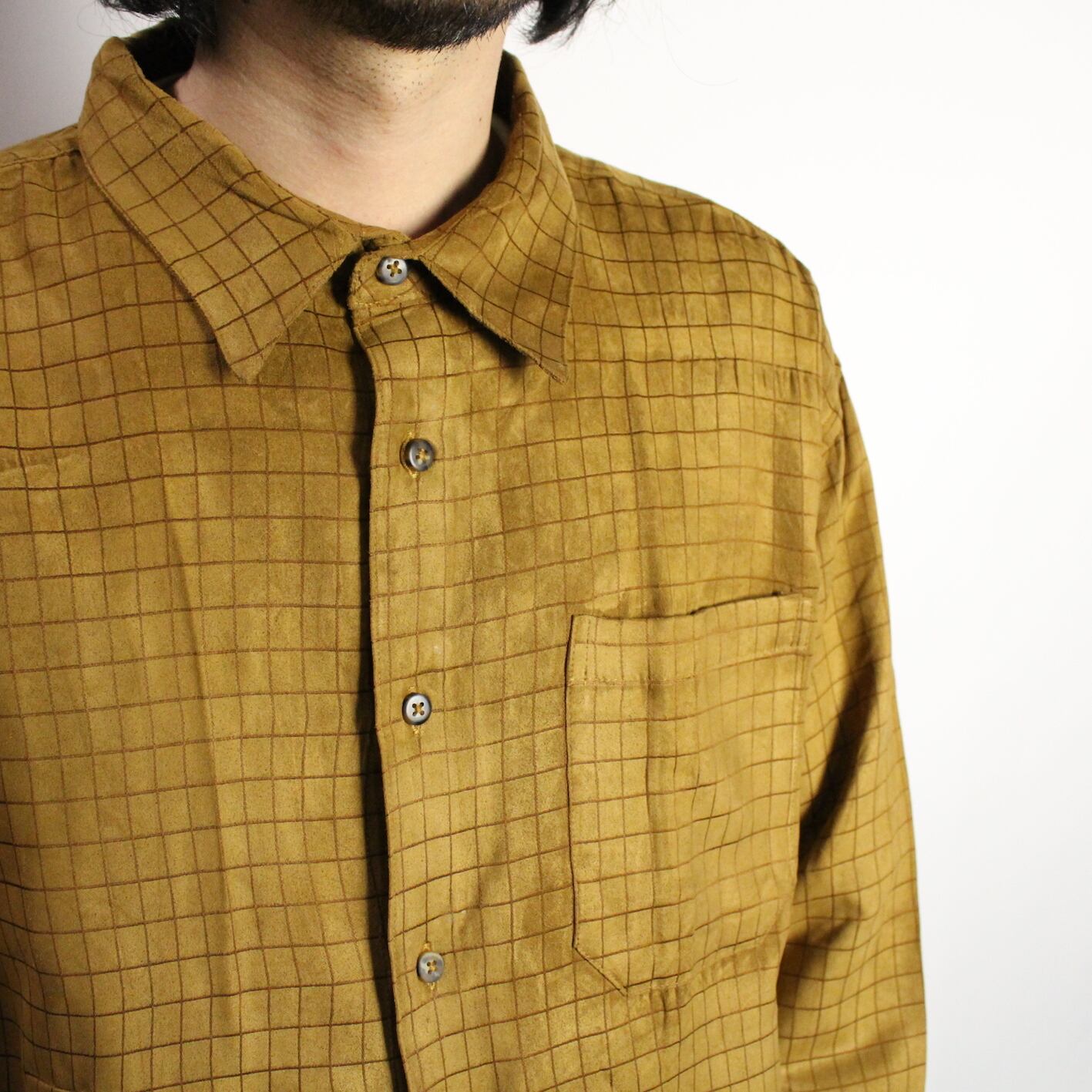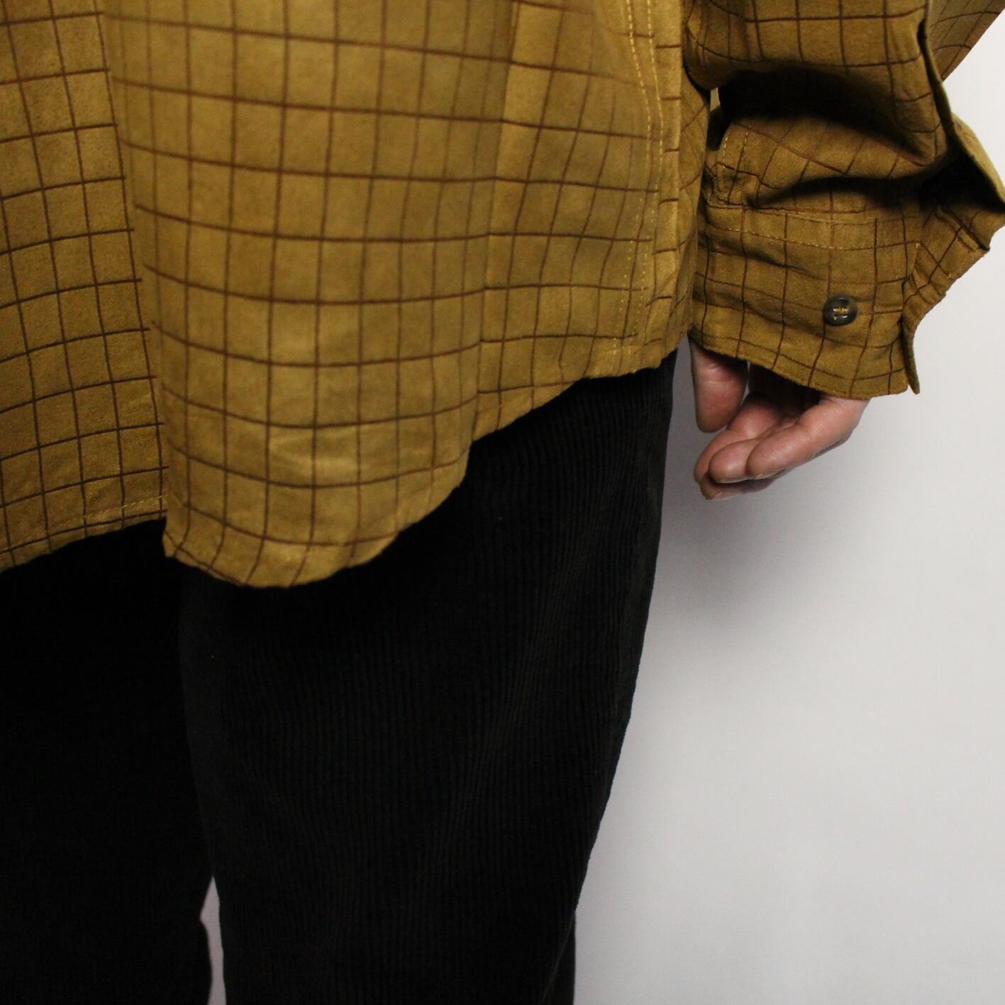 l/s check pattern fake suède shirt 【s718】