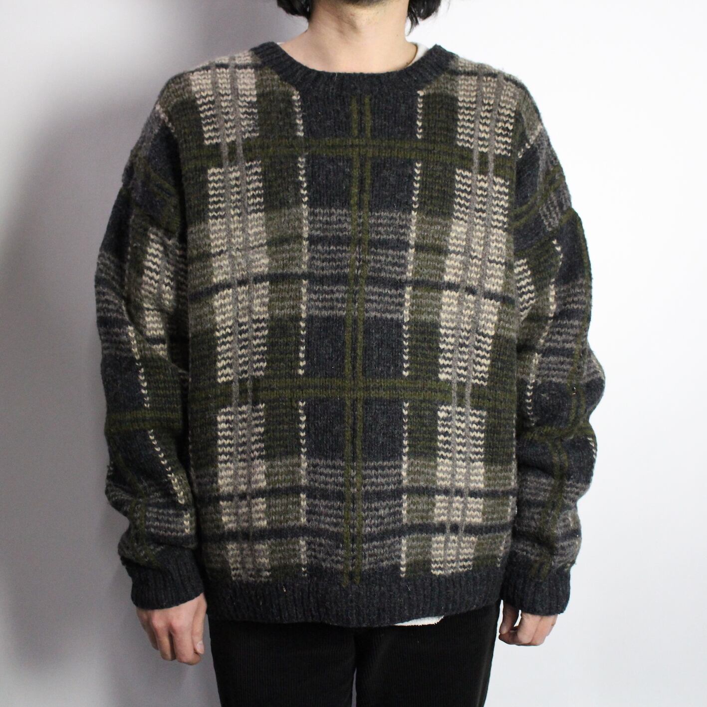 check pattern knit sweater 【s754】
