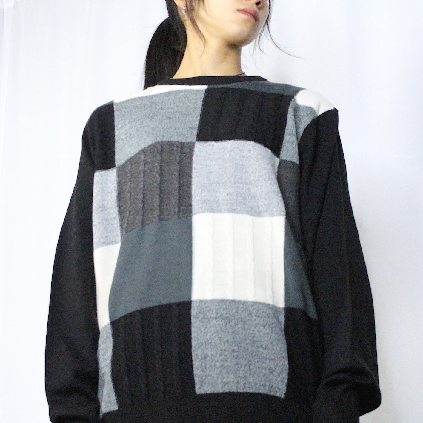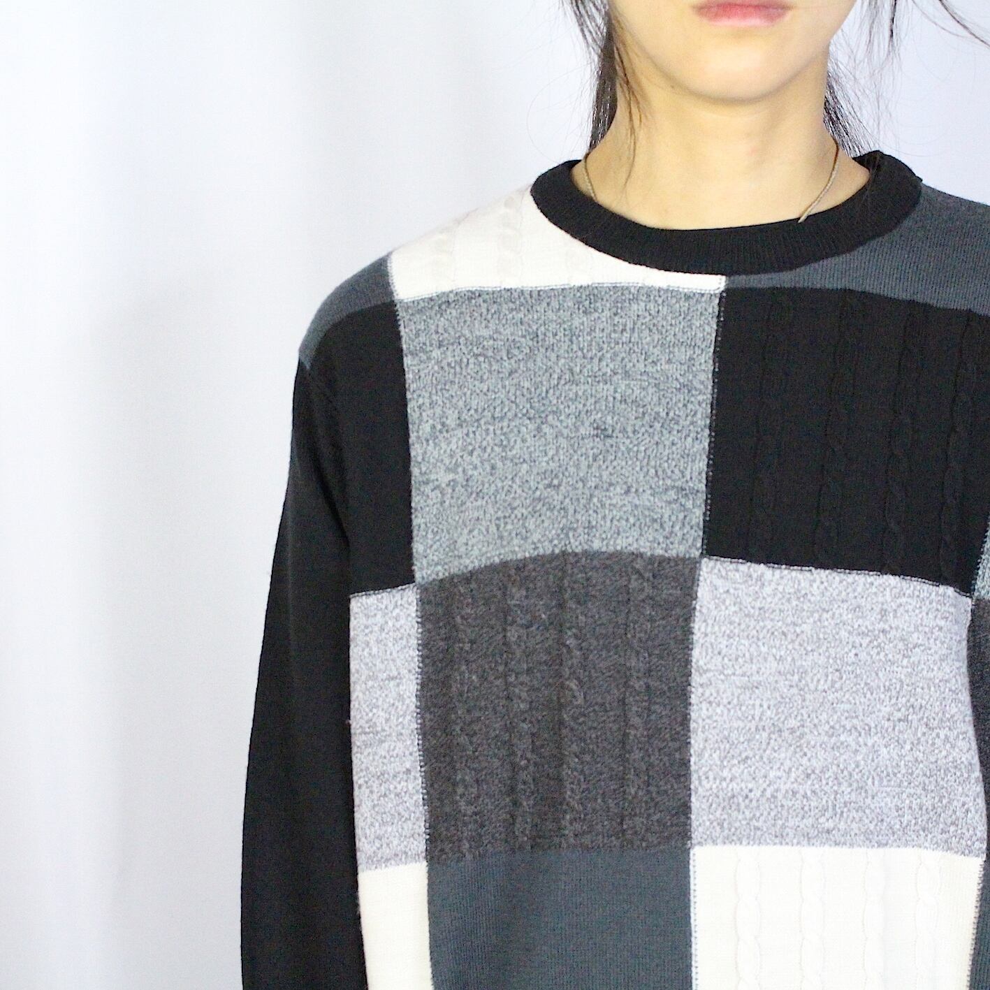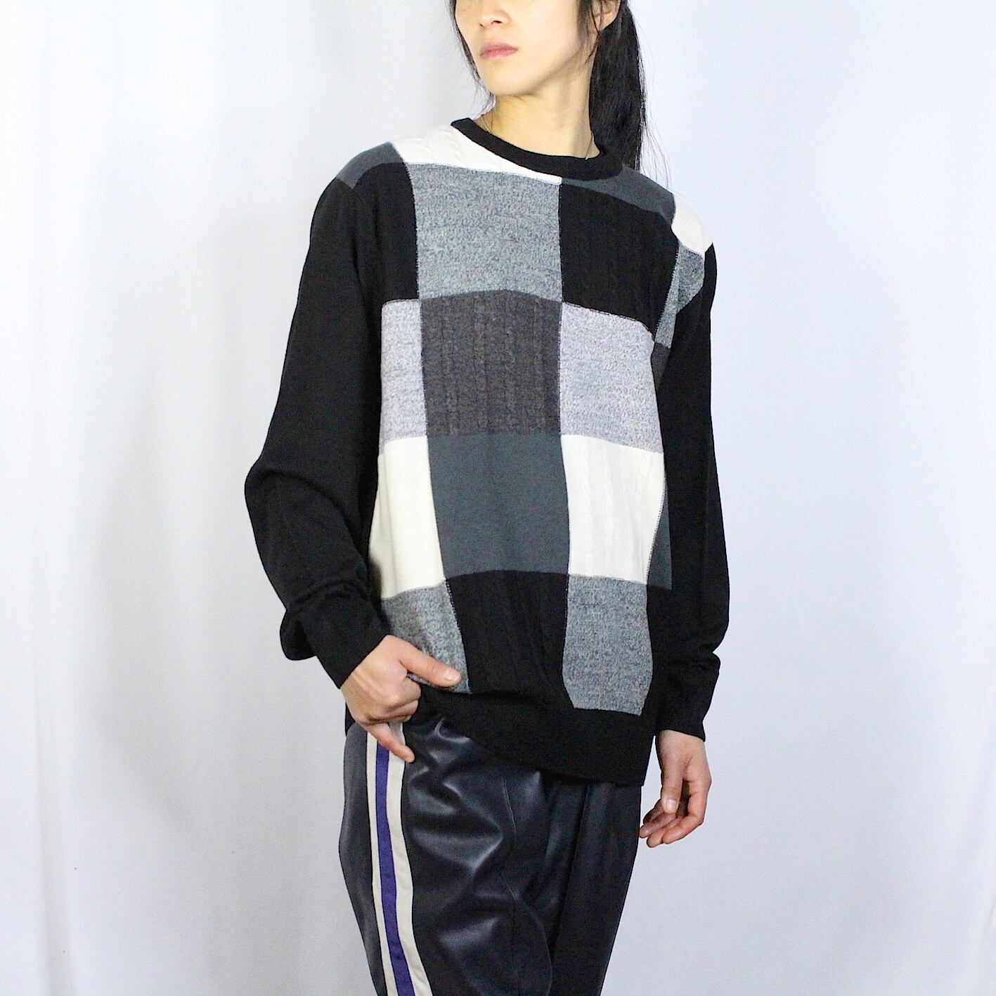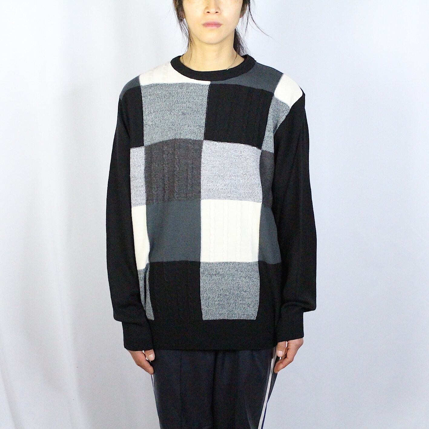 panel pattern knit sweater 【c787】