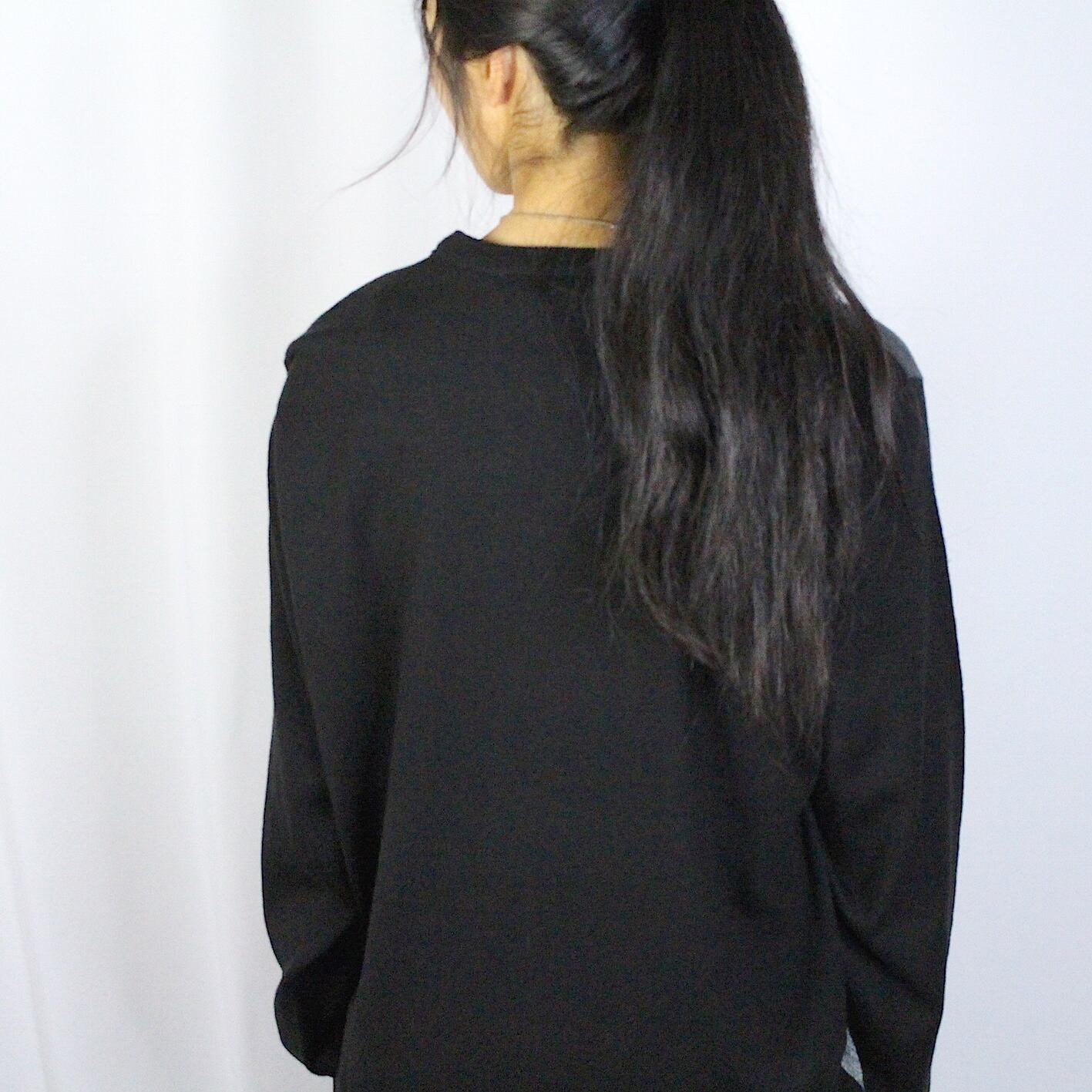 size - L、肩幅47cm、身幅69cm、着丈60cm、袖丈64cm